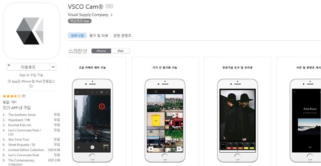 ▲ 'VSCO 캠'은 이미 많은 이들에게 인정을 받고 있는 앱이다. VSCO 그리드, 인스타그램, 페이스북, 구글, 웨이보 등에 연동이 가능하다.사진을 촬영해 원본콘텐츠를 게시하고, 편집 및 공유가 가능한 앱. 전문가적인 퀄리티의 필터가 다양한 것은 물론 다단계 편집 기능을 갖추고 있다. 사진 편집 및 공유에 유용, 사진을 선택해 기기 간에 동기화 및 편집을 할 수 있고 원본 사진의 느낌을 잃지 않고 보완하는 미세 조정까지 할 수 있다.