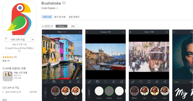 ▲ '브러쉬스트로크(Brushstroke)'는 사진을 캔버스 그림으로 변환시킨다. 여러 페인팅 스타일 중 선택해 사진을 그림으로 변환하고 색상 조합을 편집할 수 있다. 편집된 그림은 단순 SNS 공유를 넘어 프레임과 크기를 선택해 직접 집으로 배송받을 수도 있다.