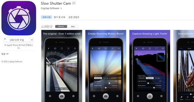 ▲ '슬로 셔틀 캠(Slow Shutter Cam)'은 움직이는 피사체로부터 느낌 있는 사진을 찍을 수 있는 앱이다. DSLR 카메라에서만 가능하던 노출효과가 가능하다. 모션 블러 모드와 라이트 트레일 모드가 있다. 모션 블러는 피사체의 큰 움직임을 잡아내고 라이트 트레일은 빛이 적은 야간에 교통, 불꽃의 움직임을 잡아내는 효과가 있다. 플래시와 손떨림 보정 기능이 포함돼 있는 것은 물론 촬영시간, 프레임 수, 민감도를 조정해 같은 장면에서도 여러 분위기를 연출할 수 있다.