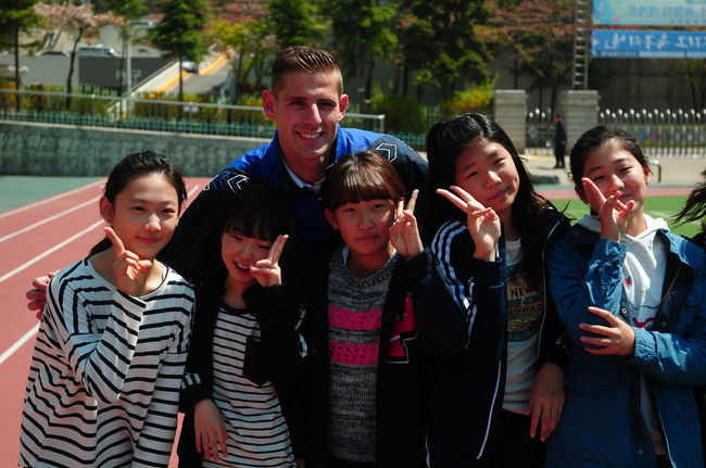 운동장에서 조를 나눠 축구 기본기 수업을 실시하는 동안 선수들은 친절하게 시범을 보여주며 학생들에게 축구를 지도했고, 특히 외국인 선수 케빈과 요니치는 ‘왼발, 잘했어’ 등 한국말을 쓰며 학생들에게 친근함을 표시하기도 했다.