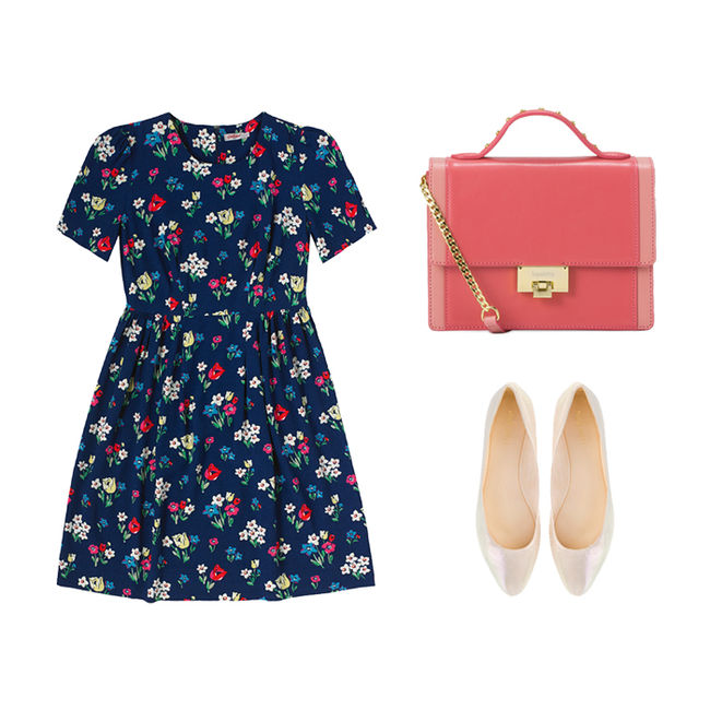 여자라면 한 벌쯤 가지고 있는 플라워 프린트 아이템은 전체적인 스타일을 로맨틱하고 여성스럽게 만들어주는데, 여기에 더욱 포인트를 주고 싶다면 컬러풀하고 앙증맞은 미니백을 매치한다. 특히 플라워 프린트에 있는 여러 가지 컬러 중 한가지 컬러를 선택해 이를 백의 컬러로도 선택한다면 더욱 세련된 연출이 가능하다.