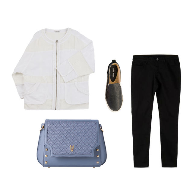대표적으로 많은 이들이 추구하는 캐주얼한 스타일에 놈코어 스타일을 적용시켜본다면 놈코어 스타일의 대표적인 컬러 매치인 화이트&블랙 스타일링 상∙하의로 매치하고 여기에 소프트한 컬러감의 백을 선택하면 보다 완성도 있는 놈코어룩을 연출할 수 있다.