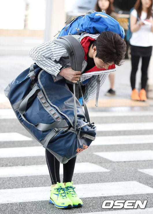 배우 이이경이 SBS '정글의 법칙' 촬영을 위해 27일 오후 인천국제공항을 통해 출국했다. 출국에 앞서 취재진에 인사를 하고 있다.
