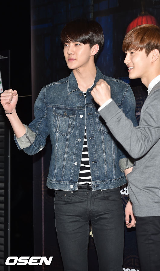 27일 오후 서울 영등포 CGV에서 진행된 영화 '차이나타운' VIP 시사회에서 엑소의 세훈이 포토타임을 갖고 있다.