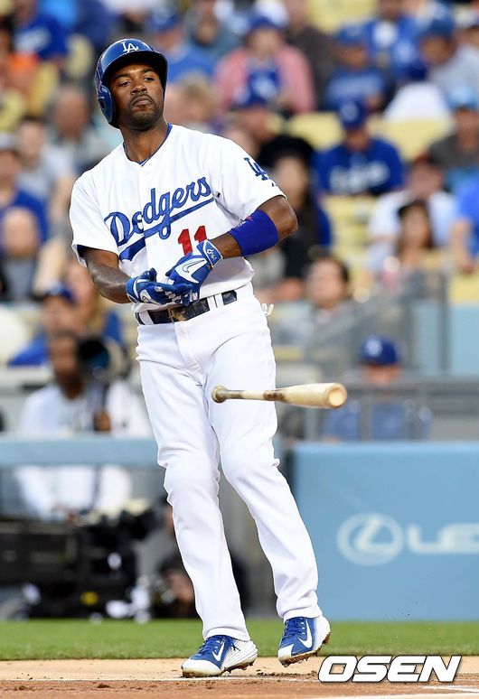 1회초 다저스 공격 선두타자로 나선 지미 롤린스가 볼넷으로 출루하고 있다.