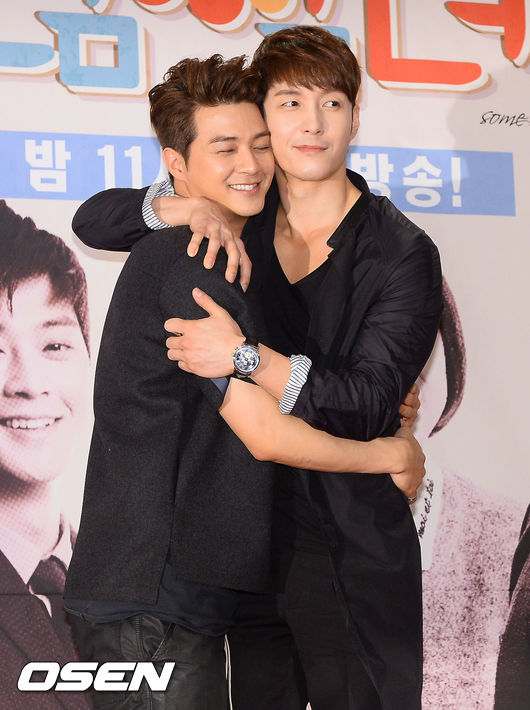 28일 오후 서울 목동 현대 41타워에서 진행된 SBS 예능 '썸남썸녀' 제작발표회에서 김지훈과 심형탁이 포토타임을 하고 있다.