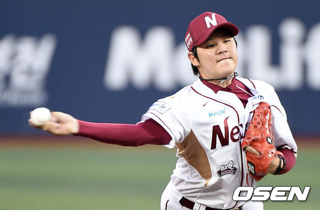 28일 오후 서울 목동야구장에서 열린 '2015 타이어뱅크 KBO 리그' 넥센 히어로즈와 롯데 자이언츠의 경기, 1회초 넥센 선발 투수 한현희가 힘차게 공을 던지고 있다.