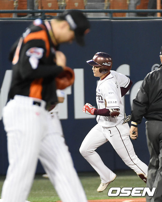 28일 오후 서울 목동야구장에서 열린 '2015 타이어뱅크 KBO 리그' 넥센 히어로즈와 롯데 자이언츠의 경기, 2회말 2사 주자 2루 넥센 김하성이 역전 투런을 치고 주루하고 있다.