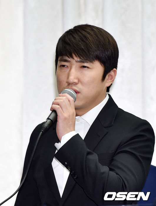 28일 오후 서울 마포구 상암 스탠포드 호텔 그랜드 볼룸에서 열린 옹달샘(유세윤, 장동민, 유상무) 긴급 기자회견, 장동민이 기자회견을 하고 있다.