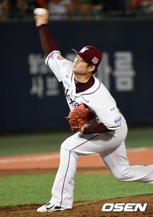 28일 오후 서울 목동야구장에서 열린 '2015 타이어뱅크 KBO 리그' 넥센 히어로즈와 롯데 자이언츠의 경기, 9회초 넥센 마무리투수 손승락이 힘차게 공을 던지고 있다.