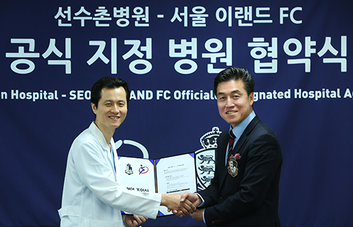 K리그 챌린지 서울 이랜드 FC(구단주 박성경)가 잠실종합운동장 사거리에 위치하고 있는 스포츠재활 전문 병원인 ‘선수촌병원’과 오피셜 스폰서 계약을 맺고 전략적 파트너로서의 협력 관계를 맺었다.