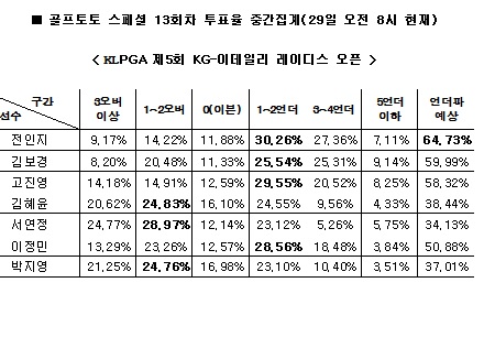 KLPGA 제5회 KG-이데일리 레이디스 오픈 1라운드 대상 스페셜 13회차 중간집계 결과