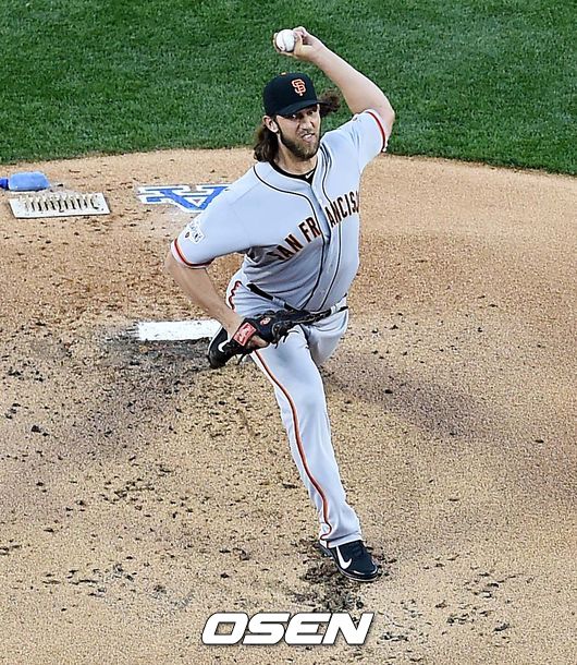 샌프란시스코 선발 매디슨 범가너가 힘차게 공을 뿌리고 있다.