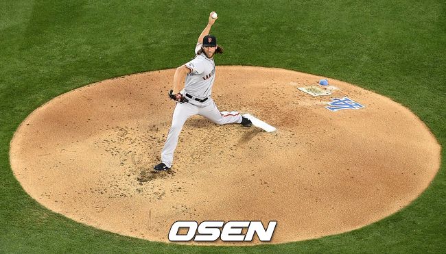 샌프란시스코 선발 매디슨 범가너가 힘차게 공을 뿌리고 있다.