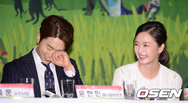 29일 오전 서울 중구 웨스틴조선 호텔 그랜드볼룸에서 열린 '제3회 순천만 세계동물 영화제' 기자회견에서 배우 윤현민, 전소민이 자리하고 있다.