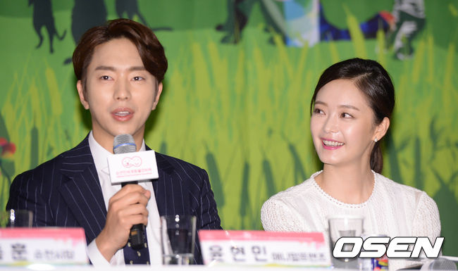 29일 오전 서울 중구 웨스틴조선 호텔 그랜드볼룸에서 열린 '제3회 순천만 세계동물 영화제' 기자회견에서 배우 윤현민과 전소민이 자리하고 있다.