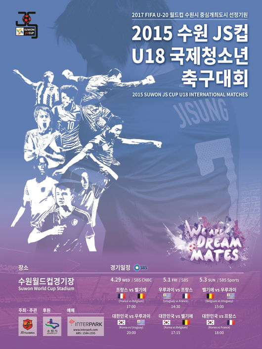 이번 대회에 대한 보다 자세한 내용은 '2015 수원 JS컵 U-18 국제청소년 축구대회' 공식 홈페이지(www.suwonjscup.com)와 페이스북(www.facebook.com/SUWONJSCUP)을 통해 확인할 수 있다.