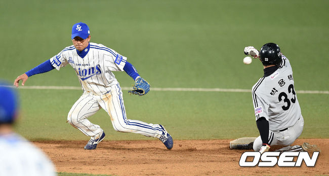 8회초 2사 1루 LG 이병규 타석때 1루주자 박용택이 도루에 성공하고 있다.