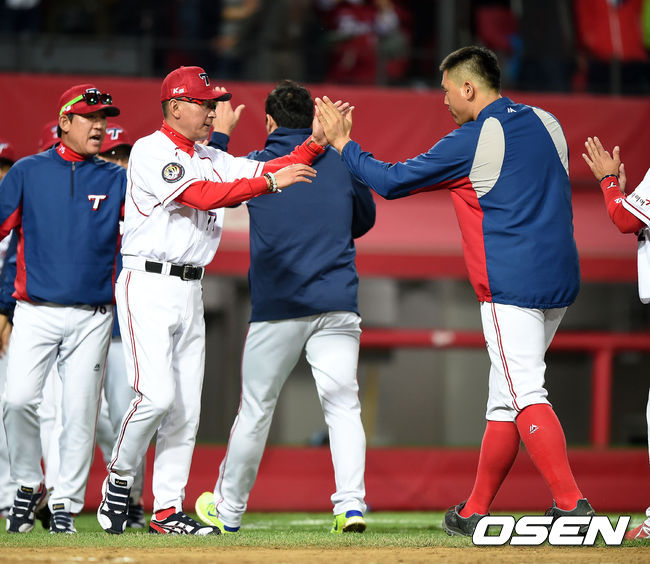 경기후 KIA 김기태 감독이 최희섭과 승리를 기뻐하고 있다./jpnews@osen.co.kr