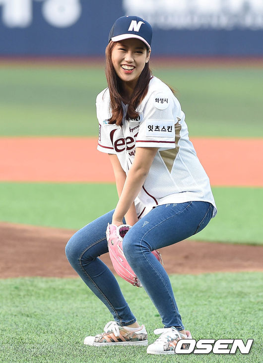 30일 오후 서울 목동구장에서 열린 '2015 타이어뱅크 KBO 리그' 넥센 히어로즈와 롯데 자이언츠의 경기 시작전 육지담이 시구를 하고 있다.