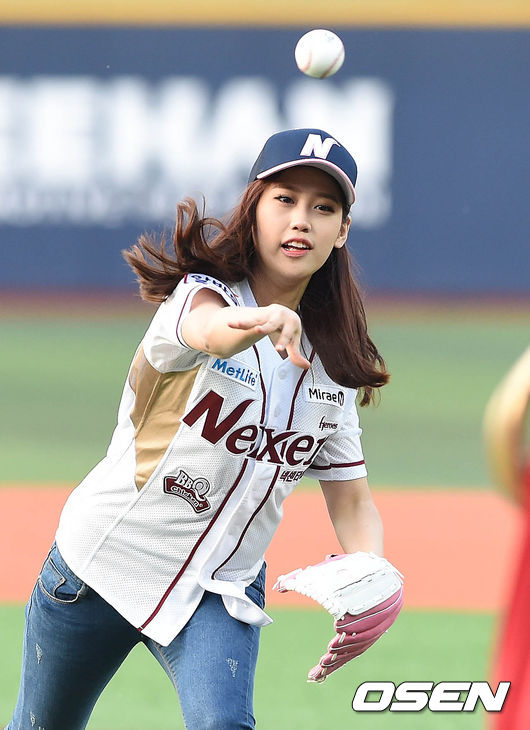 30일 오후 서울 목동구장에서 열린 '2015 타이어뱅크 KBO 리그' 넥센 히어로즈와 롯데 자이언츠의 경기 시작전 육지담이 시구를 하고 있다.