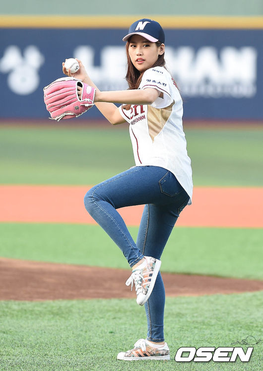 30일 오후 서울 목동구장에서 열린 '2015 타이어뱅크 KBO 리그' 넥센 히어로즈와 롯데 자이언츠의 경기 시작전 육지담이 시구를 하고 있다.