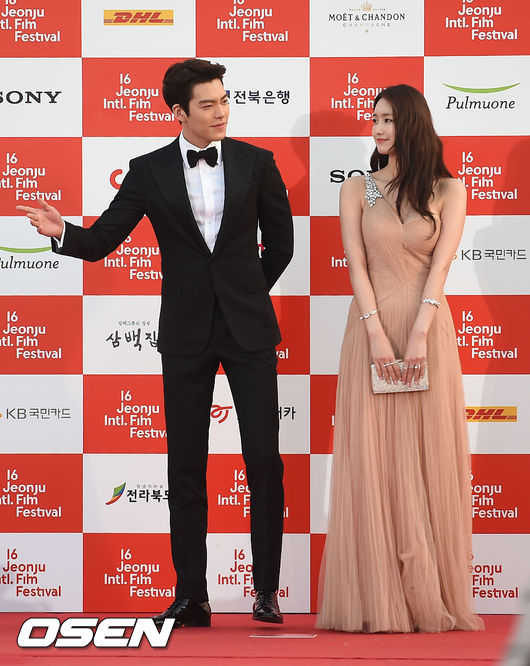 김우빈과 정주연이 포토타임을 하고 있다.