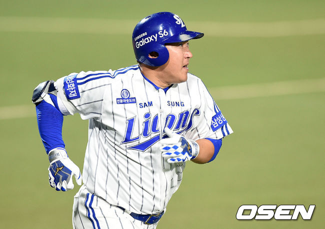 3회말 1사에서 삼성 최형우가 우중월 솔로 홈런을 치고 그라운드를 달리고 있다.