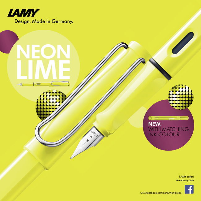 지난 3월 라인X라미 콜라보레이션 제품으로 큰 인기를 얻은 바 있는 독일 정통 필기구 브랜드 라미(LAMY)에서 5월 1일 사파리 네온라임 스페셜 에디션(Safari NeonLime Special Edition)을 내놓는다.
