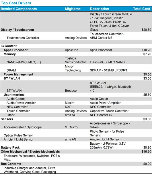 이에 IHS 케빈 켈러(Kevin Keller) 연구원은 "1세대 제품의 경우, 소비자 가격이 하드웨어 원가에 비해 높은 것은 흔한 일"이라며 "시간이 지나면서 소비자 가격은 내려가게 마련"이라고 설명했다. 하지만 그는 "애플워치의 경우 아이폰6 플러스보다도 원가의 비중이 작았다"면서, "만약 애플워치에 쏟아진 관심이 실제 매출로 이어진다면, 애플 수익에 큰 도움이 될 것"이라고 덧붙였다.