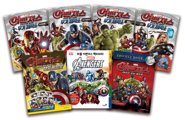 교육출판전문기업 ㈜미래엔(대표 김영진)의 아동출판 브랜드 '미래엔 아이세움'이 선보인 '어벤져스' 시리즈 7종은 어벤져스에 등장하는 슈퍼히어로 캐릭터를 활용해 놀이책, 보드게임북, 컬러링북 등으로 구성한 제품이다. 시리즈 중 '어벤져스 무기 제작소(4종)'는 아이들이 똑똑 떼어 내어 풀 없이 뚝딱 끼워 만드는 '만들기 놀이책'. 아이언맨, 캡틴 아메리카, 토르, 헐크 등 주인공 4인방의 미니 피겨와 함께 헬멧 형태로 머리에 쓸 수 있는 캐릭터 가면, 히어로의 주요 무기 등을 직접 만들어 실제로 착용 가능하도록 구성되어 있어 아이들의 흥미를 자극한다.