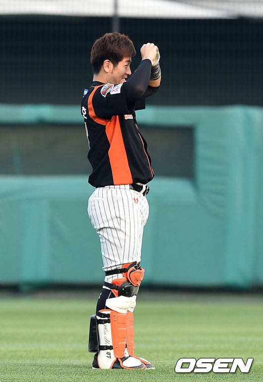 강민호,'한화 선수단 향해 하트'