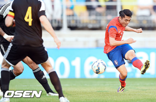 1일 오후 경기도 수원시 수원월드컵경기장에서 열린 '2015 수원 JS컵 U-18 국제청소년축구대회' 한국과 벨기에의 경기, 후반 이동준이 슛을 시도하고 있다.