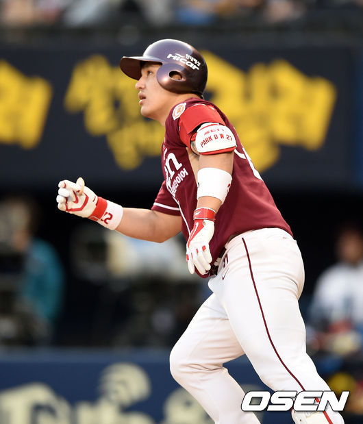 2회초 2사 1,2루에서 넥센 박동원이 스리런포를 날리고 타구를 바라보고 있다.