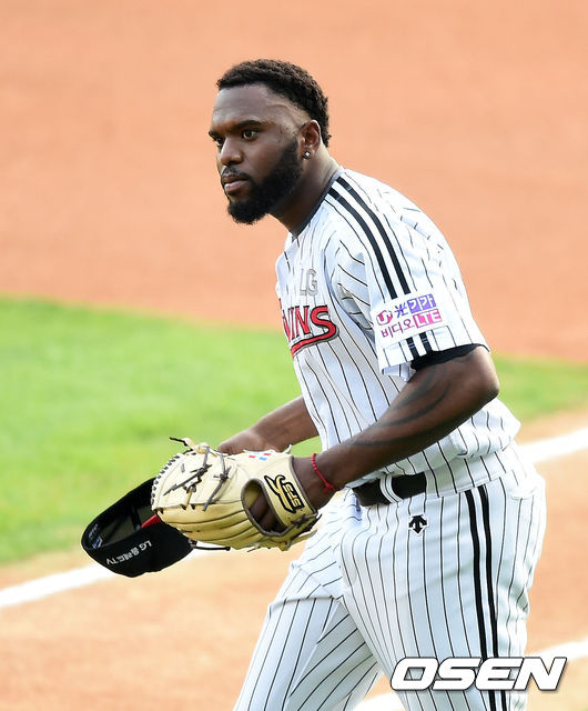 경기에 앞서 LG 소사가 그라운드에 들어서며 인사를 하고 있다.