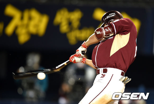 6회초 무사에서 넥센 이택근이 배트가 부러지며 3루땅볼로 물러나고 있다.