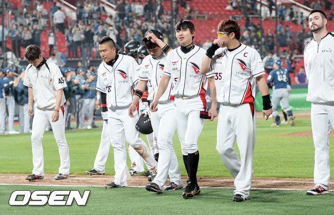 경기종료 후 kt 선수들이 아쉬워하고 있다. /soul1014@osen.co.kr