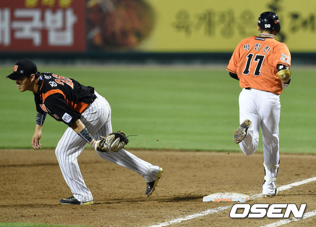 7회말 2사에서 한화 투수 박정진이 내야땅볼로 물러나고 있다.
