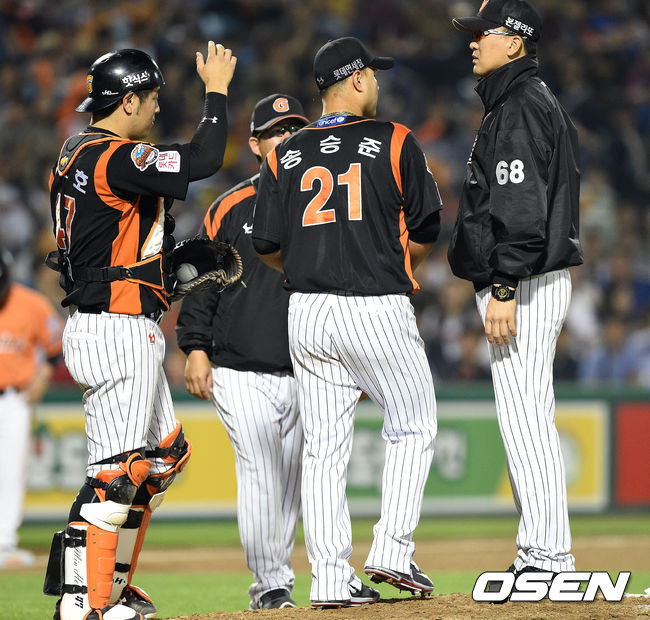 그러나 이용규에게 볼넷을 내주며 초래한 만루 위기에서 강경학과 풀카운트 승부 끝에 밀어내기 볼넷을 허용했다. 이어 김경언에게 좌측 2타점 적시타를 맞고 순식간에 5-6으로 승부가 뒤집혔다. 볼넷으로 쌓은 주자가 모두 실점으로 연결되며 전세가 역전된 것이다.
