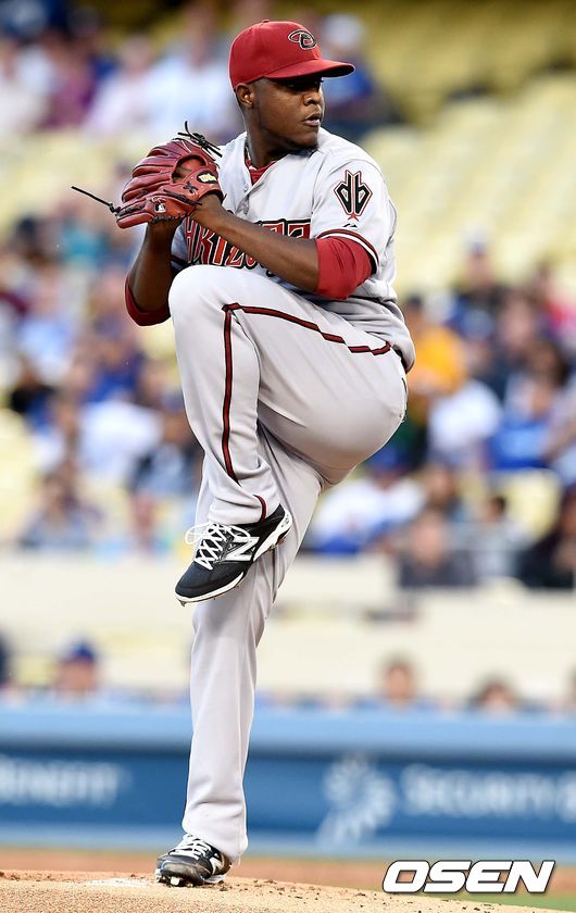 애리조나 선발 루비 데 라 로사가 힘차게 공을 뿌리고 있다.