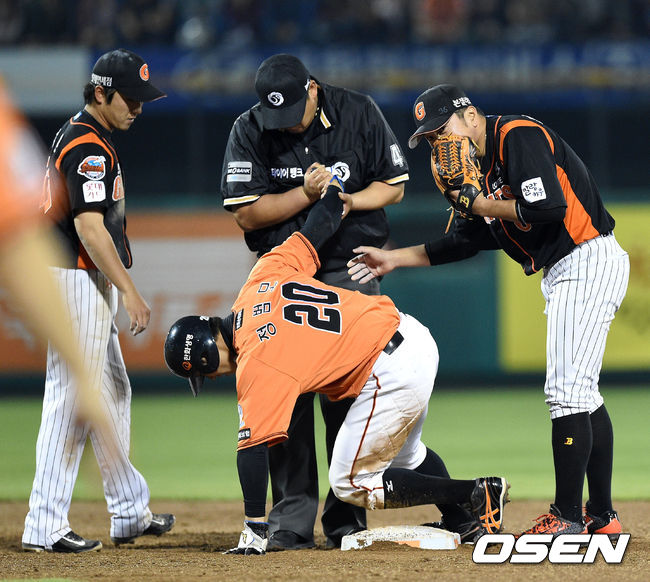 별다른 충돌은 없었지만 슬라이딩을 들어가는 과정에서 통증을 일으켰다. 정범모는 자리에서 쓰러졌고, 심판과 트레이닝코치들의 부축을 받아 덕아웃으로 돌아왔다. 결국 5회 수비부터 조인성으로 교체돼 경기에 빠졌고, 아이싱으로 급하게 치료를 받았다.
