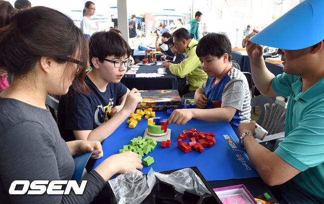 참가자 가족들이 보드 게임을 체험하고 있다.
