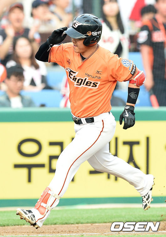3회말 무사에서 한화 정근우가 좌월 솔로 홈런을 치고 그라운드를 돌고 있다.