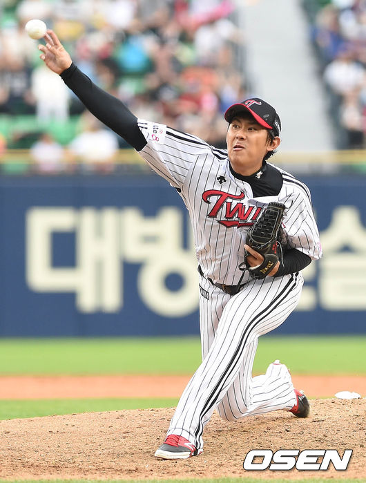 2일 오후 서울 잠실구장에서 열린 '2015 타이어뱅크 KBO 리그' LG 트윈스와 넥센 히어로즈의 경기 LG 선발 장진용이 역투하고 있다.