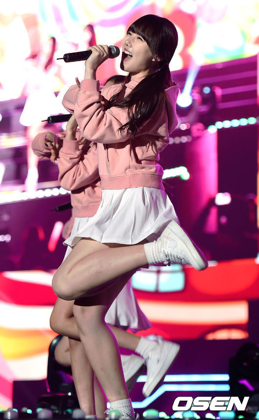 걸그룹 여자친구가 축하공연을 하고 있다.