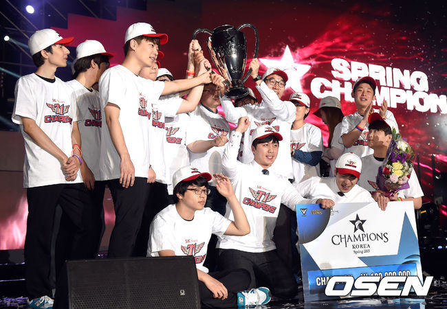 SK텔레콤은 2일 서울 삼성동 코엑스 D홀 특설무대에서 열린 '2015 스베누 LOL 챔피언스(이하 롤챔스)' 코리아 스프링 GE 타이거즈와 결승전서 신예 '톰' 임재현의 능수능란한 운영과 이지훈의 수퍼캐리가 어우러지면서 3-0 완승을 거뒀다. 이로서 SK텔레콤은 롤챔스 역사상 처음으로 3번째 우승의 기쁨을 누리게 됐고, 한국 대표로 미드 시즌 인비테이셔널(MSI) 참가 티켓을 덤으로 챙겼다. 반면 창단 첫 롤챔스 우승을 노리던 GE 타이거즈는 정규시즌의 경기력을 끌어내지 못하면서 내리 3연패 준우승에 그쳤다.