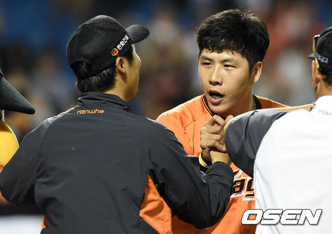 배영수의 한화 이적 첫 승 마지막 순간 마운드에는 권혁이 있었다. 권혁은 3일 연속으로 구원등판, 마지막 아웃카운트 2개를 잡고 배영수의 승리를 지켰다. 지난 겨울 나란히 FA가 돼 삼성에서 한화로 이적한 두 투수는 벌써 14년째 2개 팀을 오가며 한솥밥 먹고 있다. 보통 인연이 아니다. 덕아웃에서 권혁의 세이브 순간을 지켜본 배영수도 말로 설명할 수 없는 감정을 느꼈다.