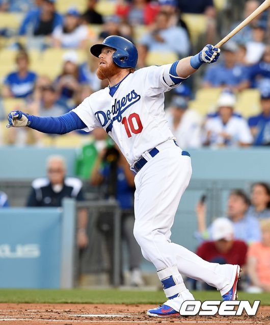 1회말 다저스 공격 1사 주자없는 상황 저스틴 터너가 추격의 좌월 솔로포를 날리고 있다.