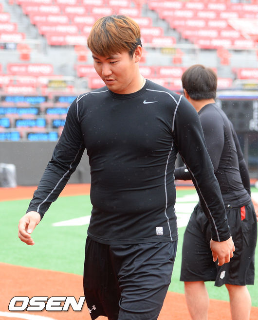 3일 오후 경기도 수원 kt위즈파크에서 '2015 타이어뱅크 KBO리그 kt 위즈와 NC 다이노스의 경기에 앞서, 장성우가 덕아웃으로 발걸음을 옮기고 있다.