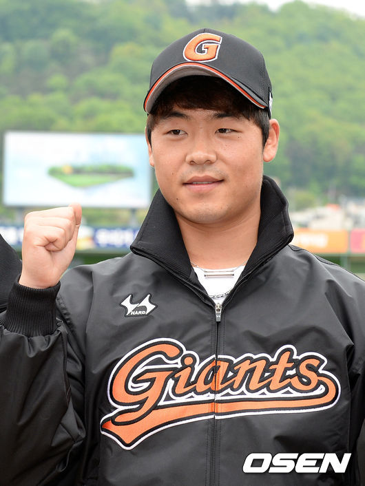 3일 오후 대전 한화생명이글스파크에서 열릴 '2015 타이어뱅크 KBO 리그' 한화와 롯데의 경기에 앞서 롯데로 트레이드된 이성민이 포즈를 취하고 있다.